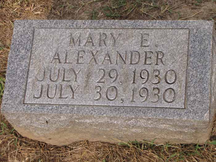 Mary E. Alexander (dau of Berry Alexander & Lula Mohundro) 29 July 1930 - 30 July 1930